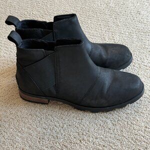 Sorel Emilie Leather Chelsea Boot Waterproof Black Bootie Size 8.5 #NL2671-010