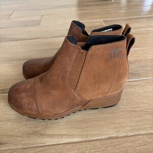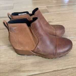 Sorel Evie II Chelsea Wedge Boot Women's 8 Brown Leather Outdoor Comfort Waterproof