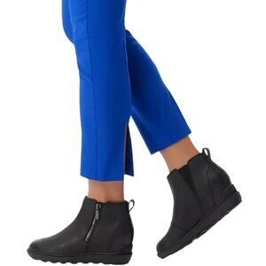 Sorel Evie II Zip Waterproof Leather Ankle Bootie Womens 9 Black Wedges City NWT