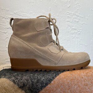 Sorel Evie Lace Tan (Ancient Fossil) Suede Wedge Bootie Size 9.5 NL3322-271