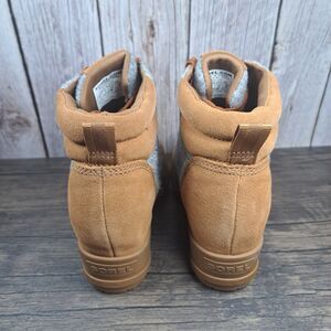 Sorel Evie Lace Up Wedge Leather Ankle Suede Bootie Women's Sz 8 Brown Tan Gray (VGC)