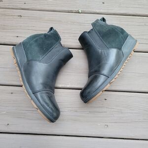 Sorel Evie Waterproof Black Leather Suede Pull-On Ankle Chelsea Boots Booties 11