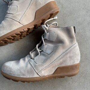 Sorel Evie Wedge Ankle Bootie Suede Waterproof, Rubber outsole, Lace Up, Round toe, Wedge heel, Ankle shaft heightWomen's Size 11