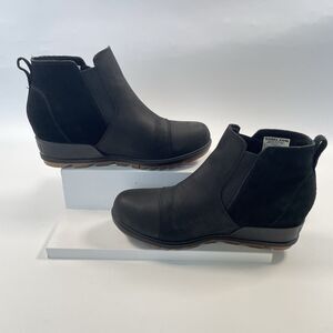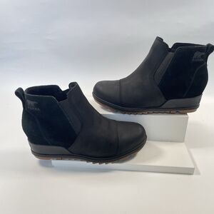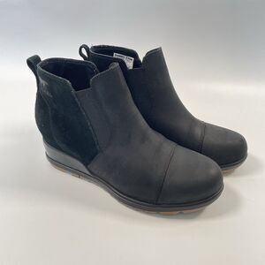 Sorel Evie Wedge Chelsea Boots Womens Ankle Booties Black Leather Size 9