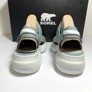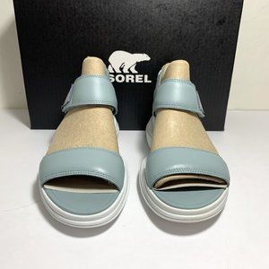 Sorel Explorer Blitz Stride Sandals Leather Wedge Crushed Blue Size 9 NEW
