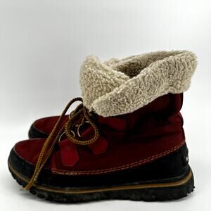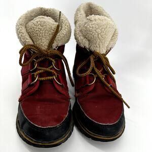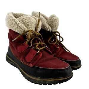 Sorel Explorer Carnival Boot Leather Waterproof Ankle Faux Sherpa Fur EVA Red 6