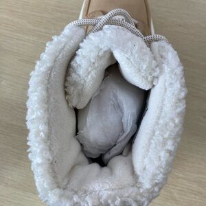 NWOT Sorel Explorer II Carnival Fall and Winter Boots size 6. These boots are so amazing. They are made of a waterproof tan colored suede with cream colored soles. They feature a fleece lining with Sherpa around the ankles and on the tongue of the boots. The Sorel Logo on the heel is in a powder pink. These are amazing for all weather and super fashionable! Sorel is known for their warmth and comfort.