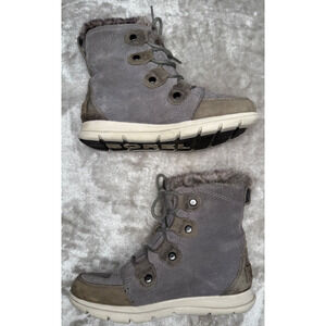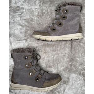 Sorel Explorer II Joan Gray Suede Faux Fur Waterproof Winter Boots Womens 8 Excellent condition - see pictures for wear