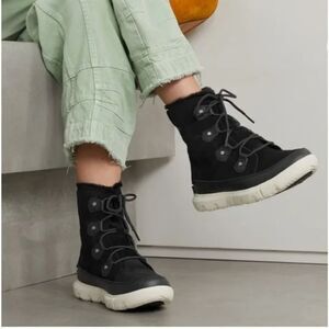 Sorel Explorer II Joan WP Black faux fur-trimmed suede ankle boots Sz 11