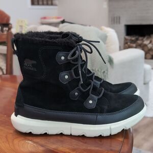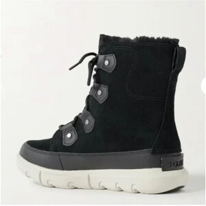 Sorel Explorer II Joan WP Black faux fur-trimmed suede ankle boots Sz 11