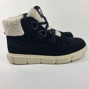 Sorel Explorer III NW Lace Women Waterproof Suede Winter Boot Black White Size 12