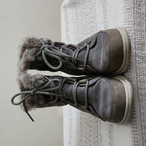 Sorel Explorer Joan Waterproof Winter Snow Boots genuine leather faux fur gray womens 6. Great condition, gently worn