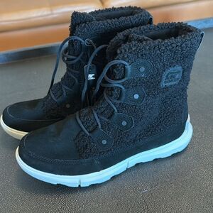 Sorel Explorer Next Joan Faux Shearling Black Boots size 8.5