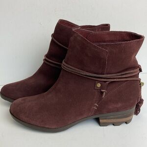 Sorel Farah Waterproof Ankle Boots Strappy Tassel Detail Burgundy Maroon Suede Women’s 11 Western