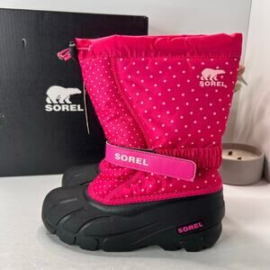 Sorel Flurry Print Adjustable Polka Dots Boots Fuchsia Fizz NC3503-650 Girl's 5