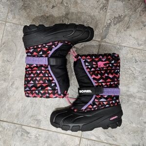 Sorel Flurry Winter Boots. Women's/youth size 6. Preowned in good condition. These snow boots are made from a durable water-resistant upper with an adjustable gaiter and barrel lock that lets them keep snow out. For some added warmth, there’s a washable felt inner boot that keeps them cozy. The outsole on these boots is made from a waterproof thermal rubber with the added grip of multi-directional lugs. So whether they’re walking around the park or building a snowman in the yard, they’ll have the comfort and surefooted feel they need.