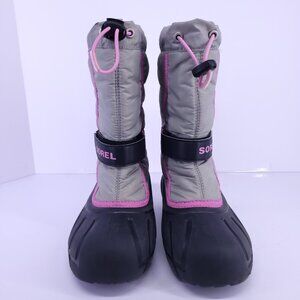 Sorel Flurry Youth Winter Snow Boots Gray Pink Black NY1965-061 Size 3