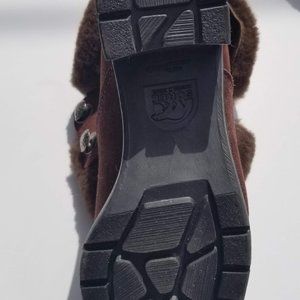 Genuine suede, Faux inner lining with fold over top fur. Lace up front. Gently used