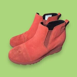 Sorel Genuine Suede Neon Pink Orange Peach Wedge Ankle Booties Size 9
