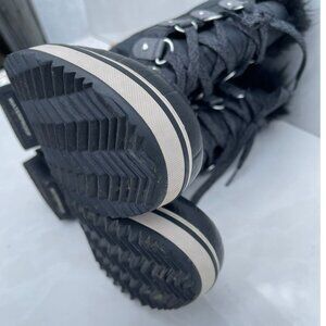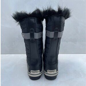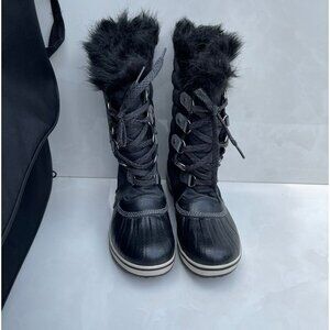 Sorel Girls Tofino II Fur Trim Waterproof Rubber Rain Boots Black Sz 5