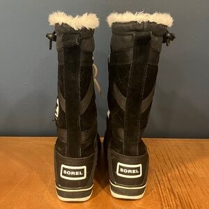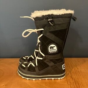 Sorel Glacy Explorer Boots, waterproof black suede, shearling lined. sz 5