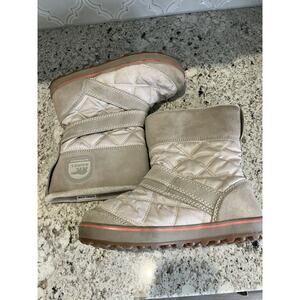 Sorel Glacy Womens Sz 8.5 Boots Beige Snow Winter Fleece Lining Waterproof