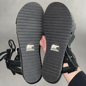 Sorel Gladiator Sandals Ella Black Leather Strappy Heel Zip Snakeskin Size 9