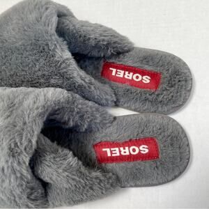 Cozy soft slip on slides for around the house by Sorel Go Run Mail Slipper in Quarry Quarry gray. Nonslip rubber bottom. Excellent preowned condition, worn once but a little too snug. Women’s size 9.
