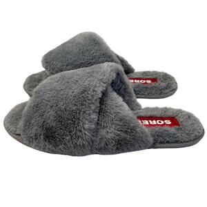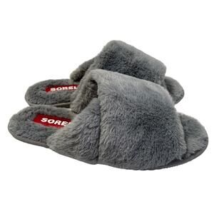 Sorel Go Mail Run Slipper Quarry Quarry Gray Faux Fur Open Toe Slip On 9