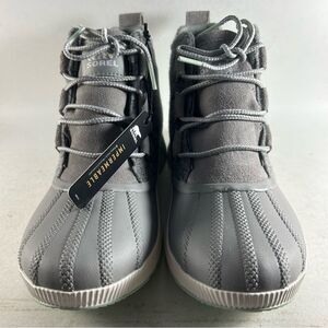 Experience ultimate comfort and protection with Sorel's winter and rain boots, featuring a durable rubber shell and a cozy textile upper. The gray and green color scheme adds a stylish touch, while the high-top design ensures warmth and support in wet and cold conditions. Perfect for tackling winter weather with confidence.