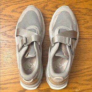 Sorel sneakers with a stylish strap. Gray mesh with tan accents. Ideal for everyday wear.