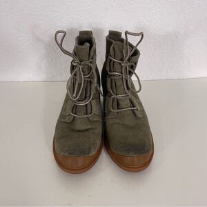 Sorel Green Leather Suede Lace Up Wedge Booties