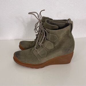 Good condition Sorel Green Leather Suede Lace Up Wedge Booties