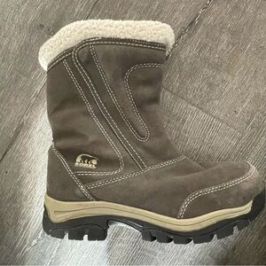 Sorel Grey Waterfall Suede Mid-Calf Zip Up Winter Boots