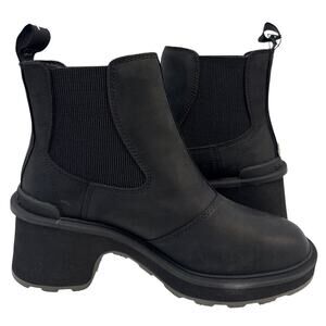 Sorel Hi Line Heel Chelsea Bootie Women's 7.5 Waterproof Leather Black Sea Salt