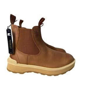 Sorel Hi-Line Chelsea Boot Ankle Womens 9.5 WP Leather Scorch Tawny Buff Pull On