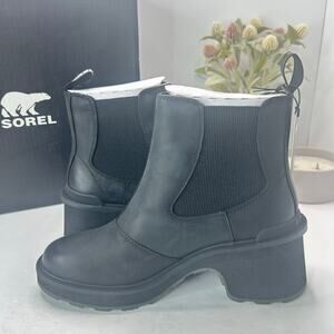 Sorel Hi-Line Heel Leather Chelsea Boot Black NL4874-010 Women 9.5 Tried On