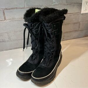 Sorel High Black Suede Mid Calf Lace Up Winter Boots 7