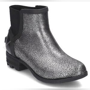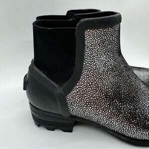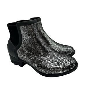 Sorel Janey Chelsea Black/Metallic Short Ankle Rubber Rain Booties Size 7 Glam
