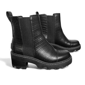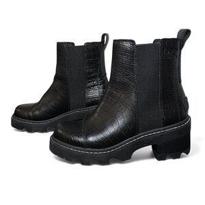 Sorel Joan Now Chelsea Boots in Black Tawny Buff Croc (Size 7)
