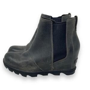 Sorel Joan Of Arc Leather Wedge Chelsea Ankle Boot In Quarry Women’s Size 9.5