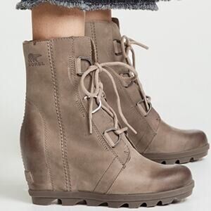 Sorel Joan Of Arc Wedge II Waterproof leather uppers Boots in Ash Brown 11 NEW