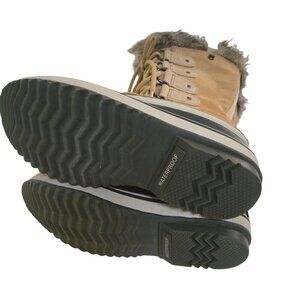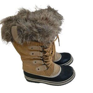 Sorel Joan Of Arctic Beige Suede Lace Up Faux Fur Lined Mid Calf Boots Size 6