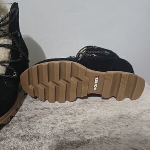 Sorel Joan Of Arctic Black and Fur Heeled Winter Booties Size 8 NWOT