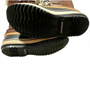 NOTE: One button does not snap over fur piece. See last photo for reference. It does not affect you being able to wear the boots, as you won’t be able to notice it. I had no issues wearing them. Otherwise, these boots are still in great condition! Price was lowered due to minor flaw.