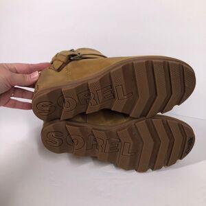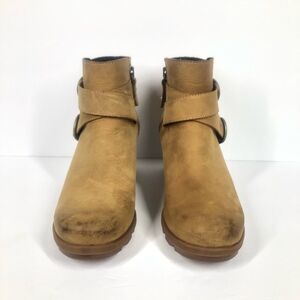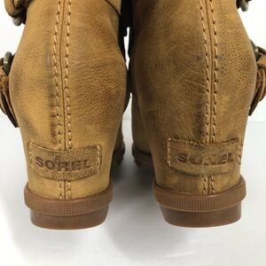 Sorel Joan Of Arctic II Elk Tan, Hidden Wedge, Buckle Boot Booties Waterproof Leather, Intentional Distressing Throughout As Well As Some Normal Signs Of Wear, Overall In Great Preowned Condition. Women’s Size 9.5