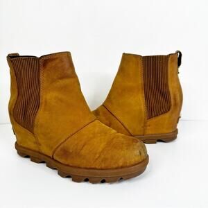 Sorel Joan Of Arctic Leather Wedge Chelsea Boot Camel Tan Size 8 NL3022-224