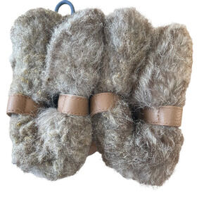 In great condition but the fur top lining seems to have been singed. Please see photos. Priced accordingly. In otherwise, excellent shape!