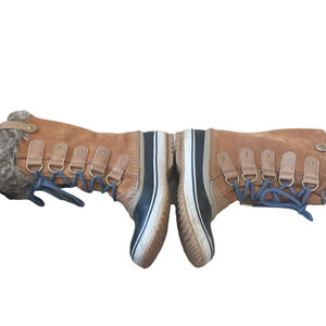 Sorel Joan Of Arctic Tan and Blue Lace Up Boots - Size 5.5