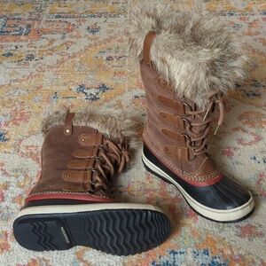 Sorel Joan Of Arctic Waterproof Suede Leather Faux Fur Trim Rubber Snow Boots